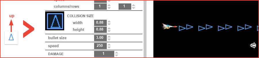 Animation speed edit box: If the bullet is an animated sprite, the value modifies the animation speed.