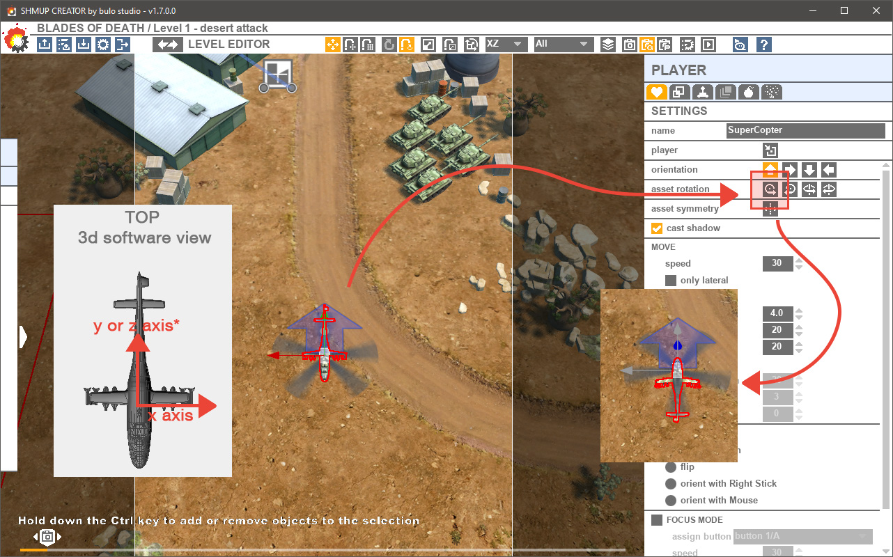 !!! Note: in your 3D tool, mind the orientation of your object according to the way you want your object appears and moves into the game.